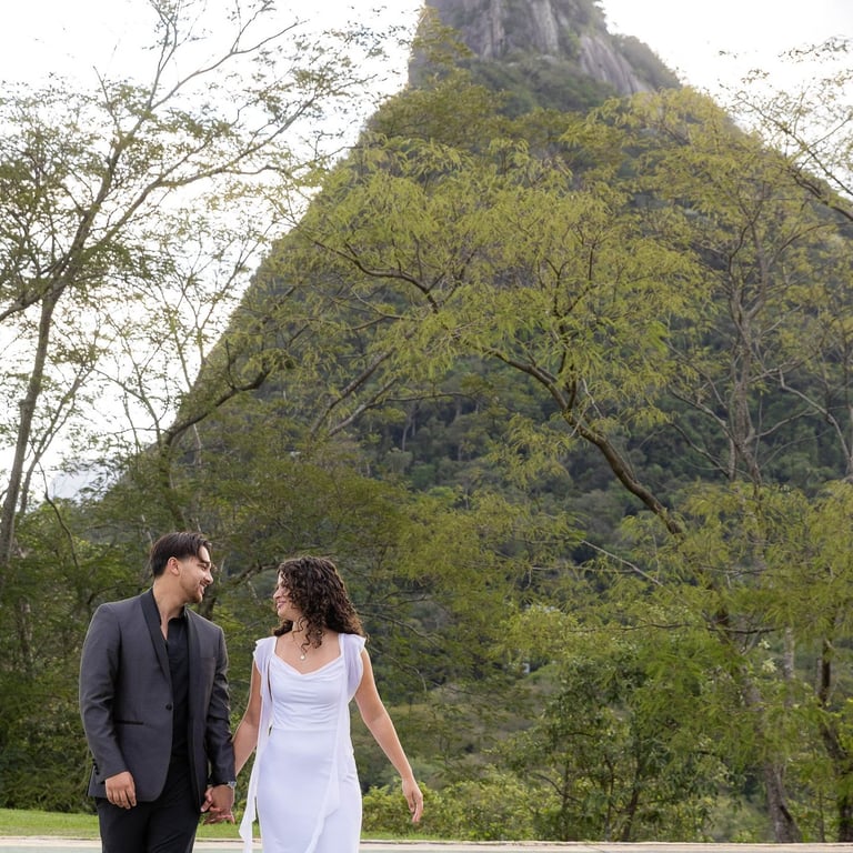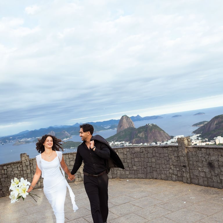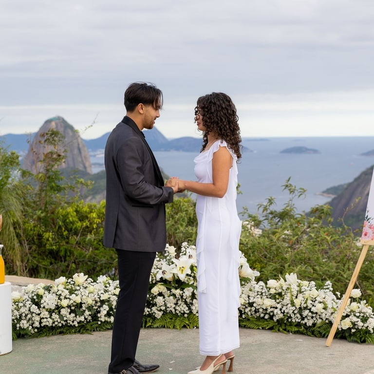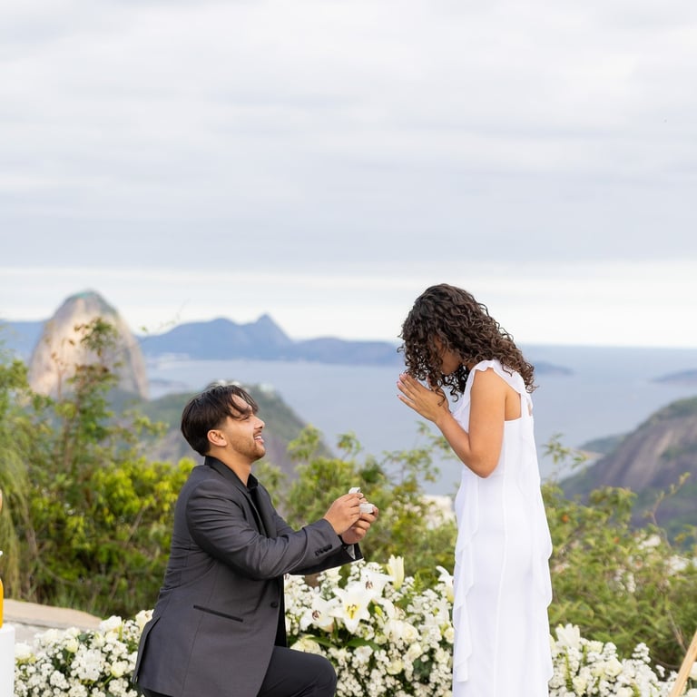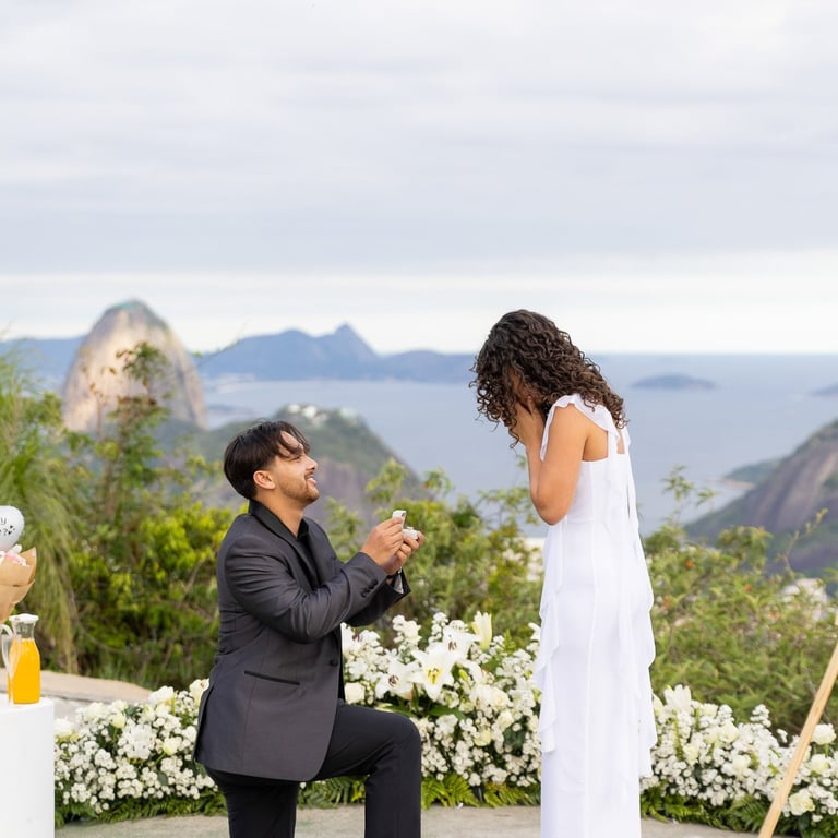 With the stunning view of Rio de Janeiro behind them, Ilaaan got down on one knee and asked Yasmeen to marry him. Surrounded by flowers and one of the most beautiful landscapes in Brazil, the moment was emotional, intimate and unforgettable.
