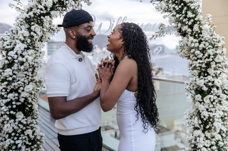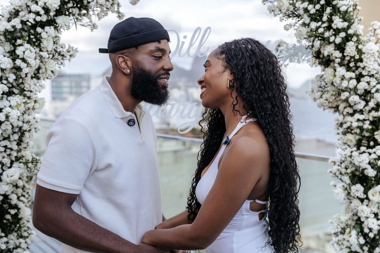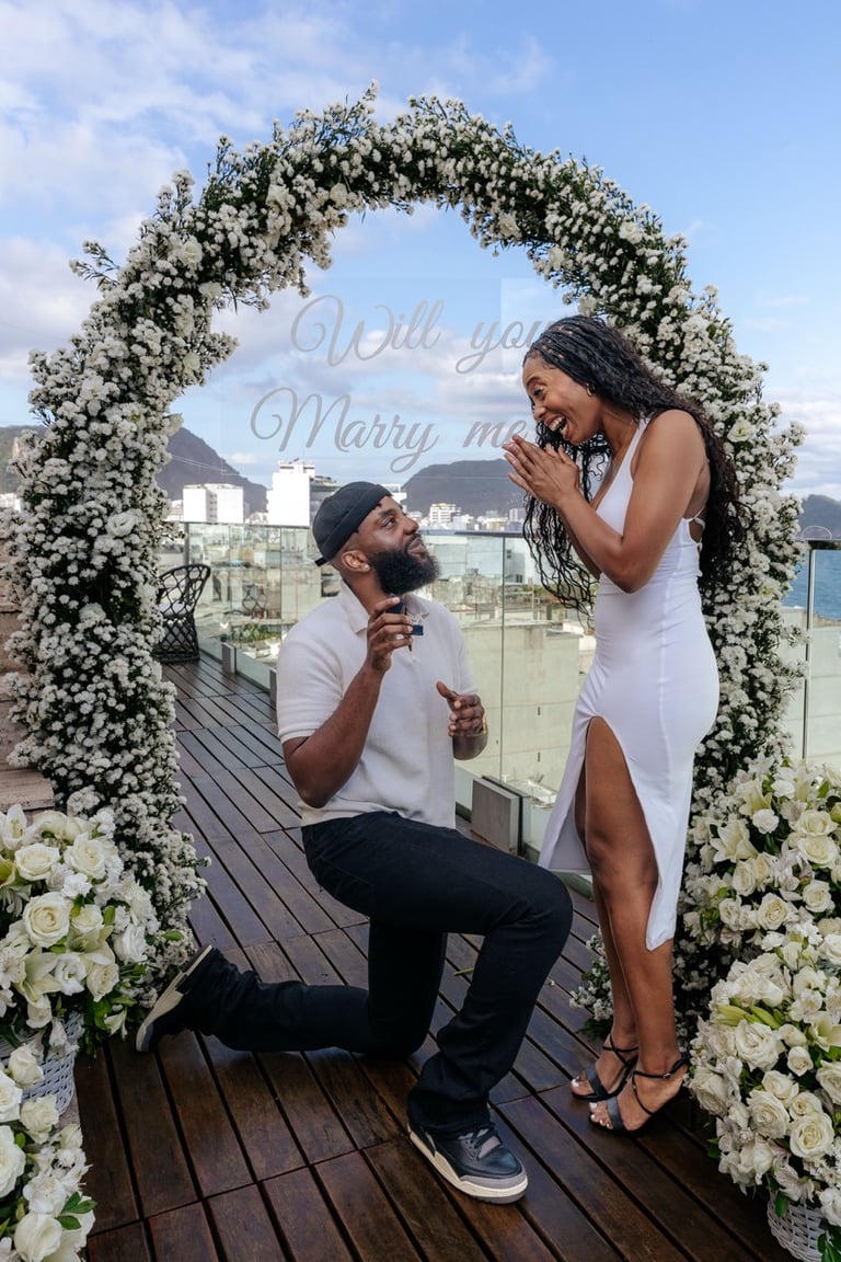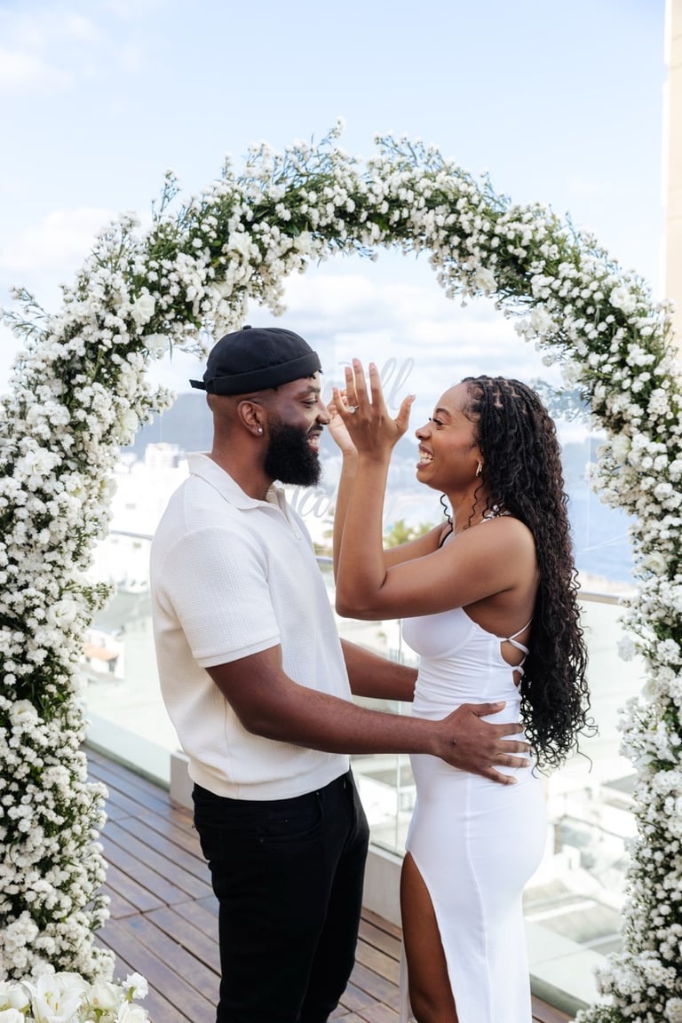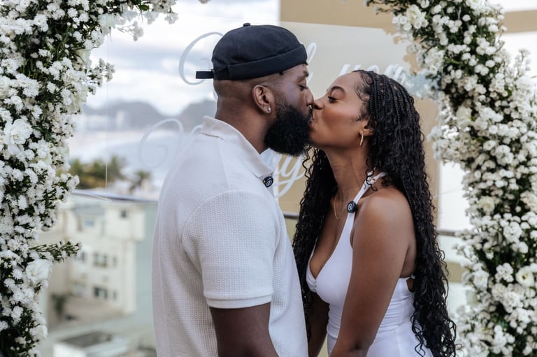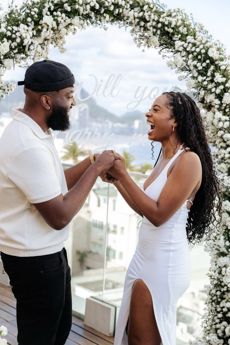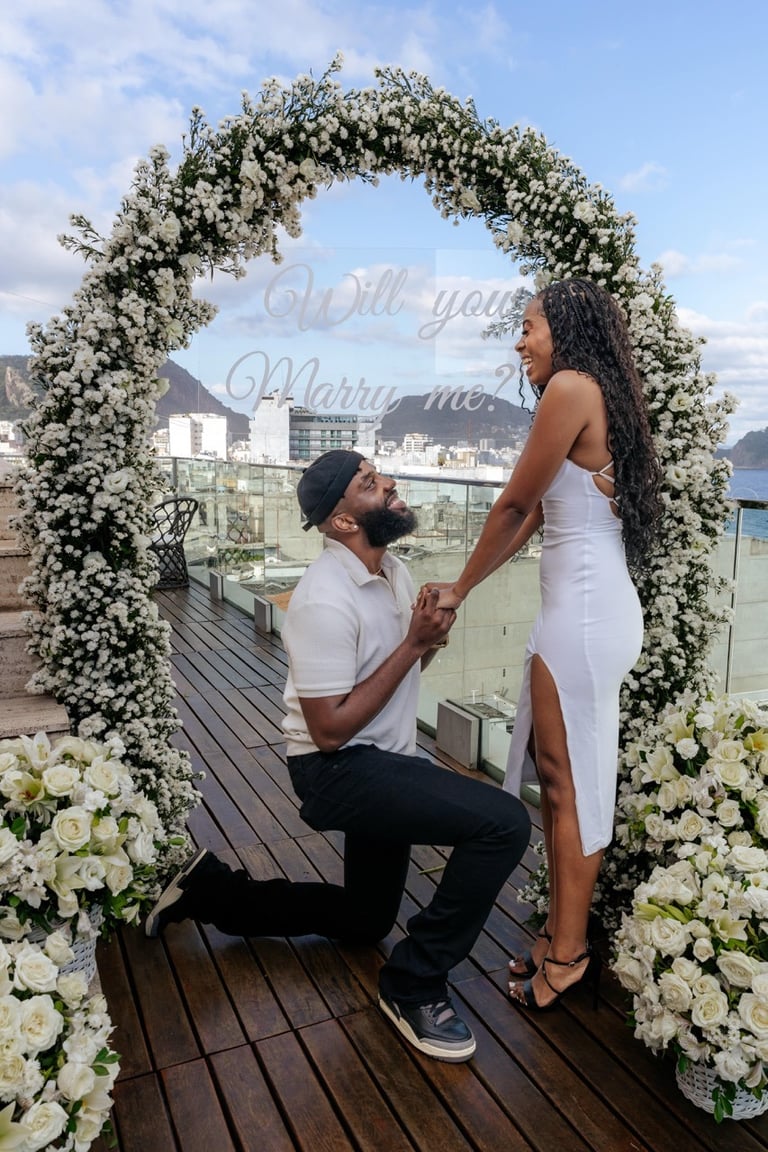 LC planned a surprise marriage proposal in Rio de Janeiro for his love, Dhaiza, during their trip from the United States. With the help of our team, every detail was carefully organized — from the rooftop location at their hotel in Copacabana to the elegant floral arch and décor. In a moment filled with love and emotion, LC got down on one knee, and Dhaiza’s reaction was pure joy and surprise.