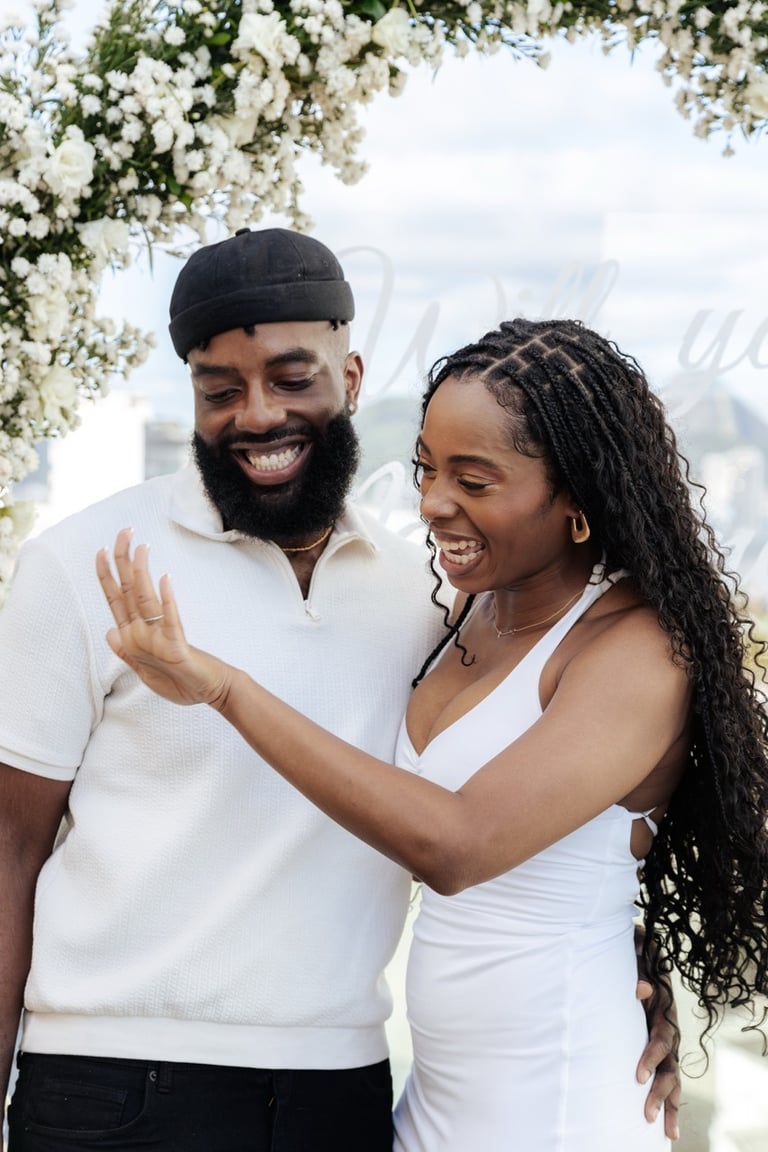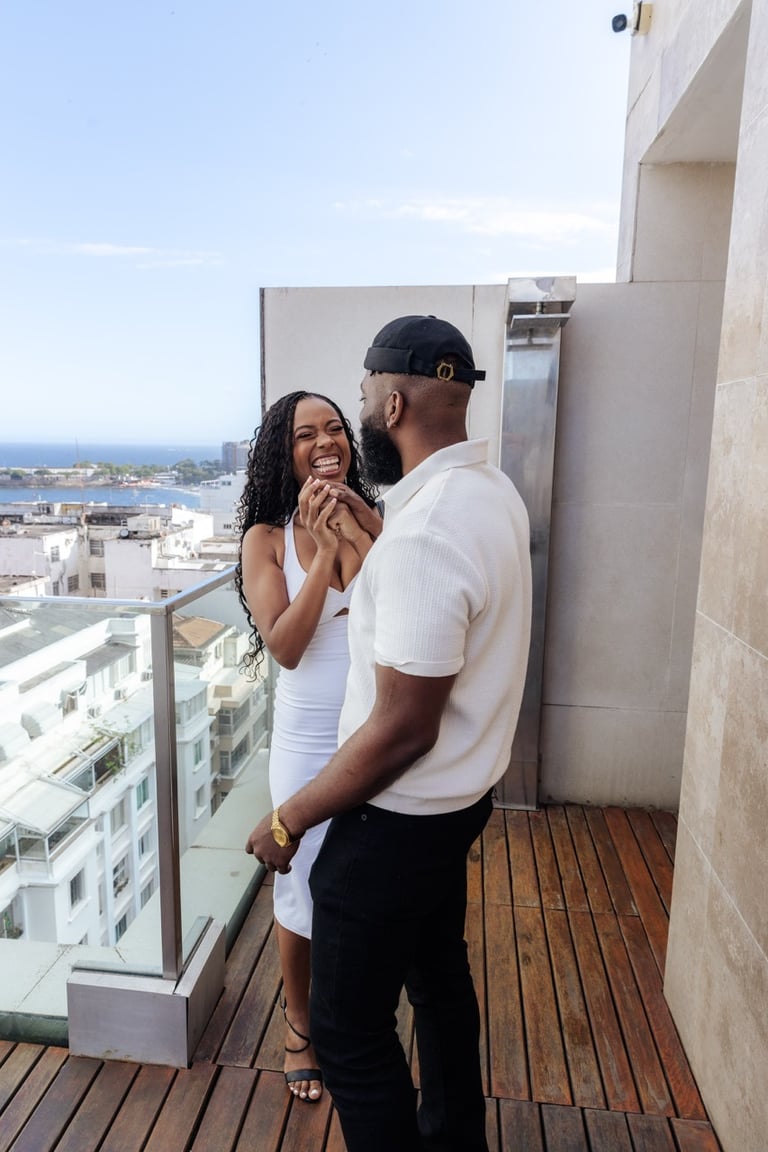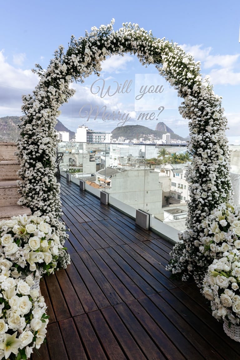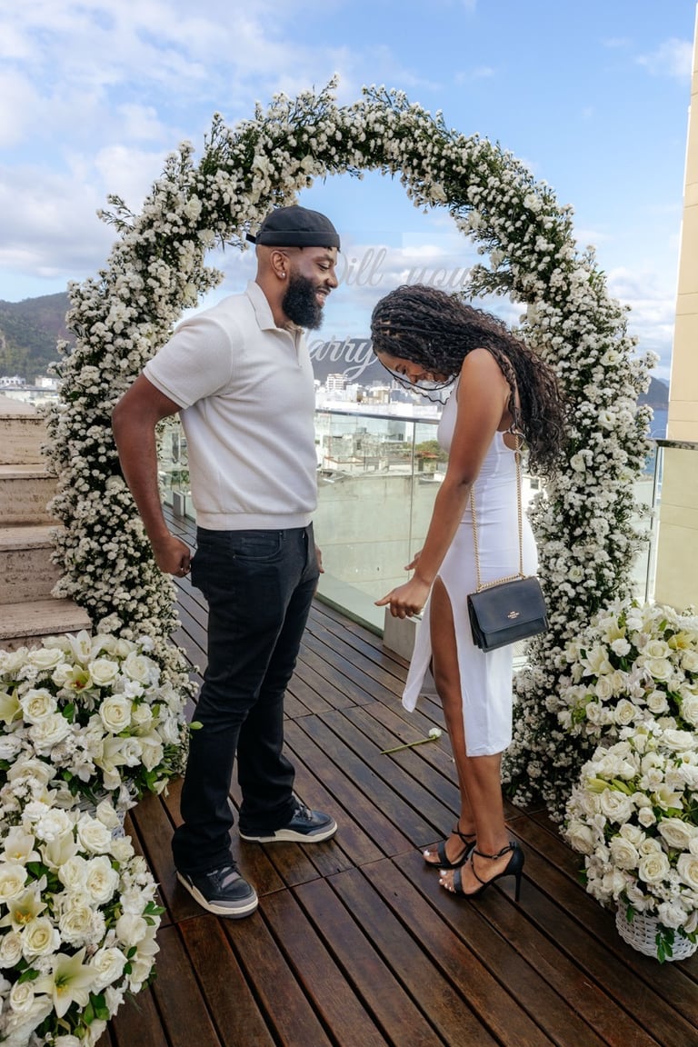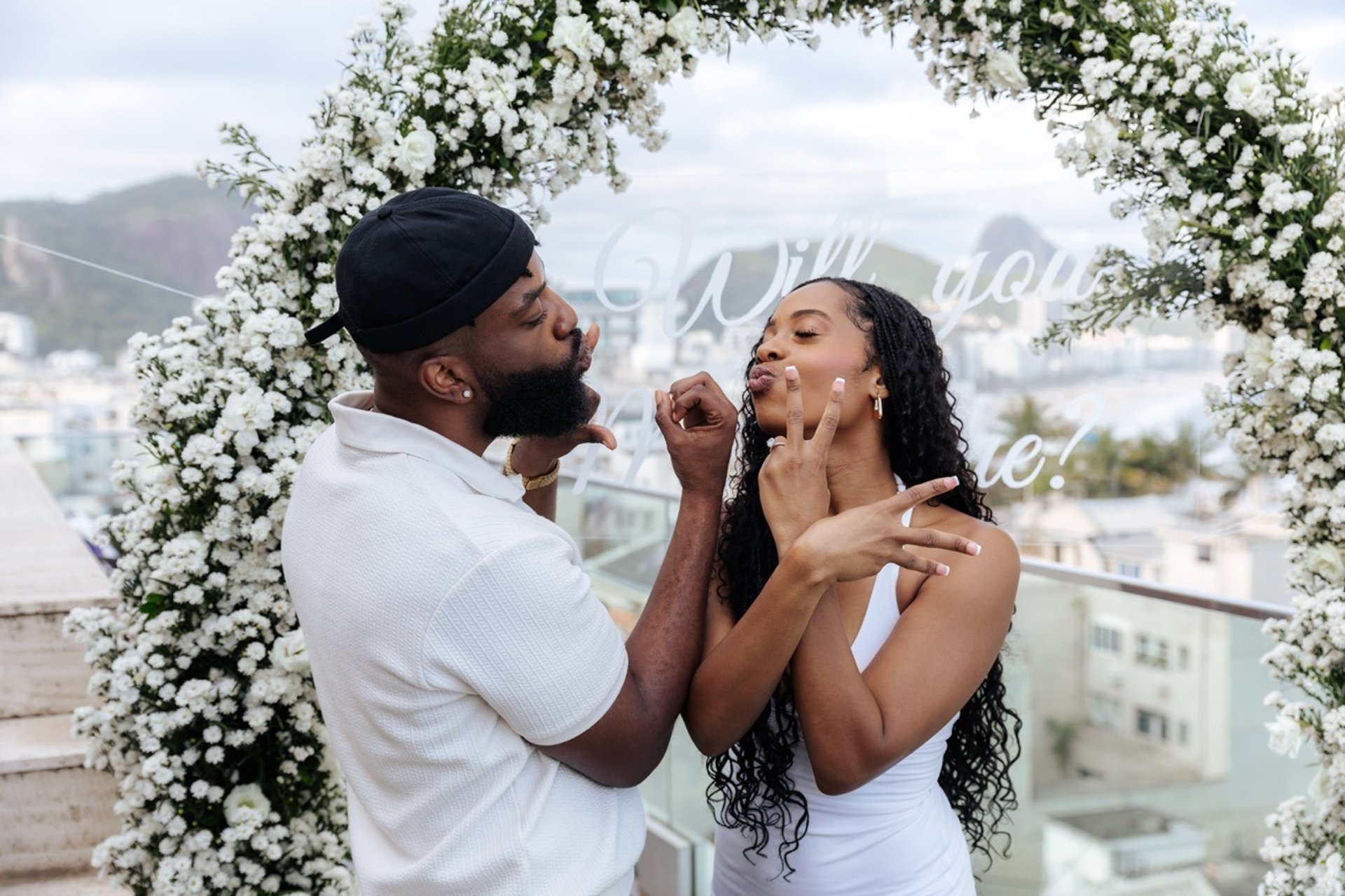 LC planned a surprise marriage proposal in Rio de Janeiro for his love, Dhaiza, during their trip from the United States. With the help of our team, every detail was carefully organized — from the rooftop location at their hotel in Copacabana to the elegant floral arch and décor. In a moment filled with love and emotion, LC got down on one knee, and Dhaiza’s reaction was pure joy and surprise.