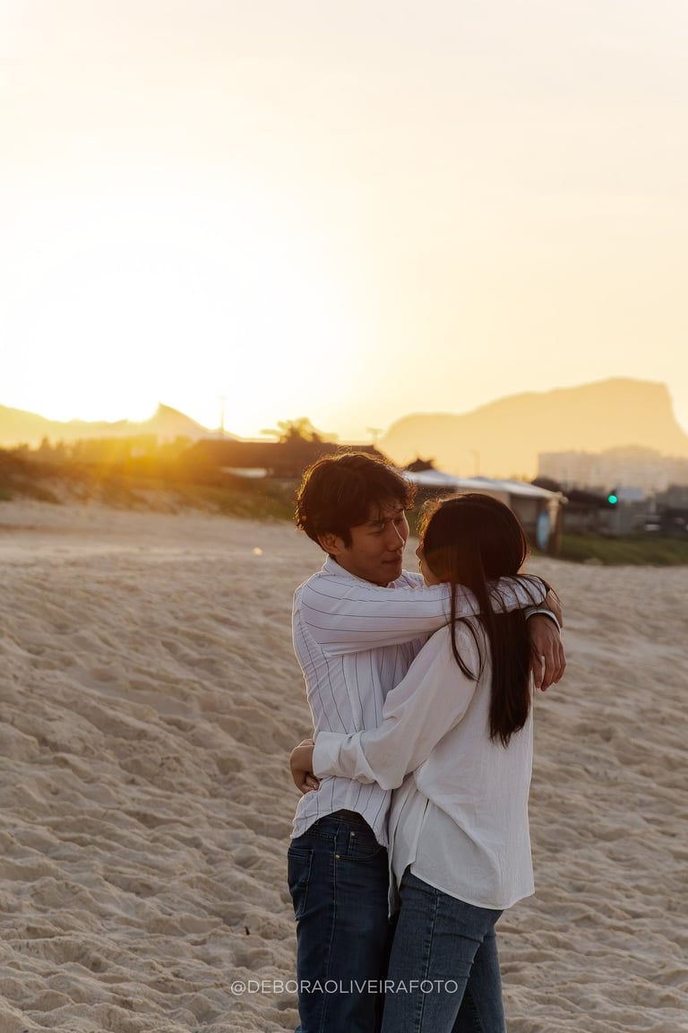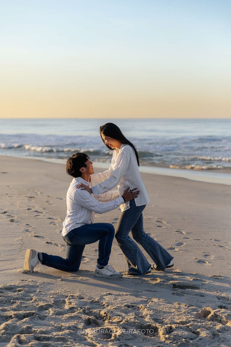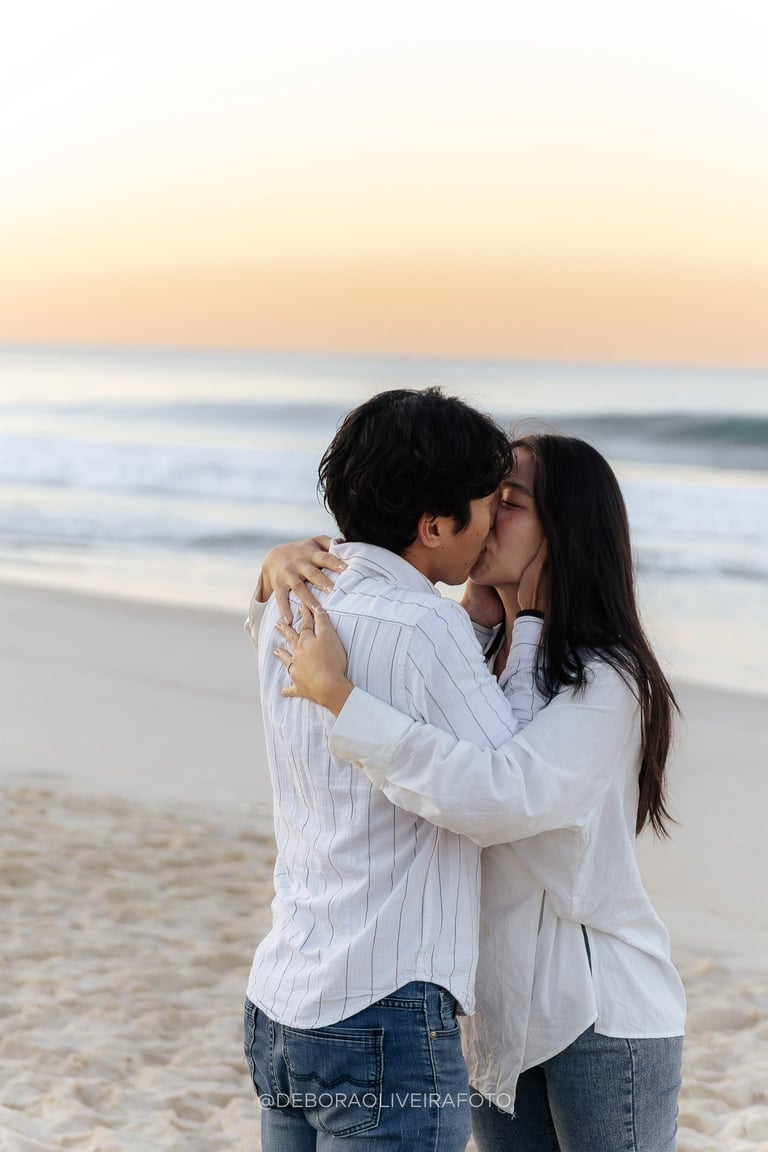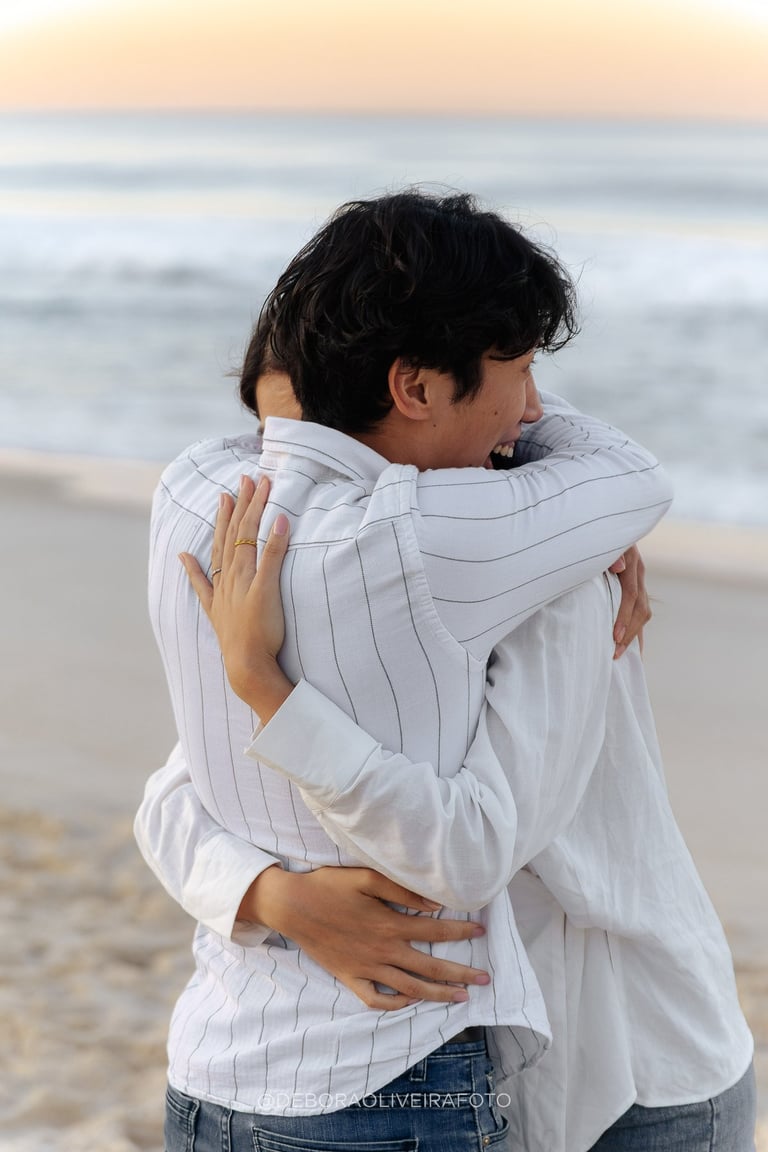 Alejandro planned a romantic marriage proposal at Praia da Reserva in Rio de Janeiro during sunrise, just the two of them, in the quiet beauty of the early morning. With soft golden light, empty sands, and the sound of the waves, the moment felt intimate and magical. Kuilen’s reaction was pure joy, and we captured every second of this unforgettable sunrise beach proposal in Rio, a perfect start to a new chapter in their love story.