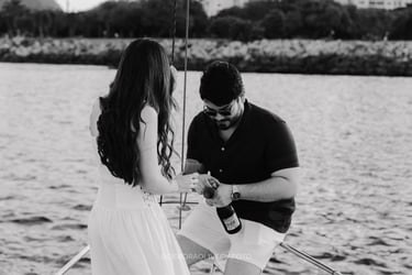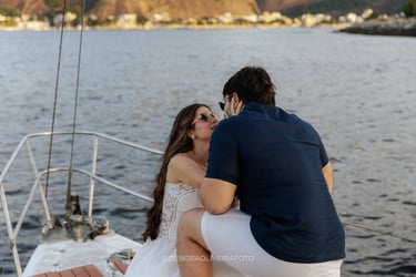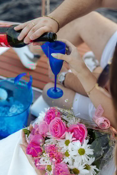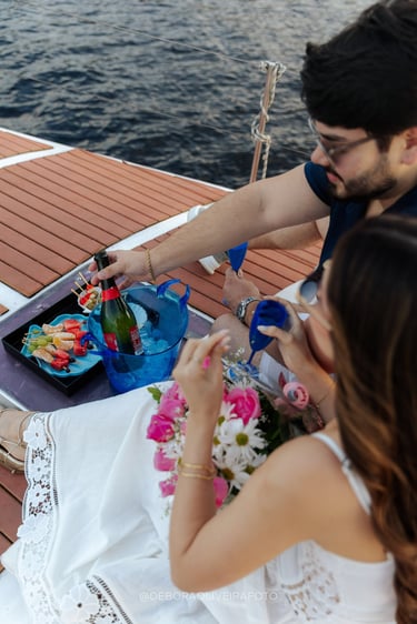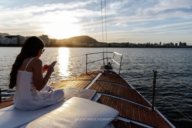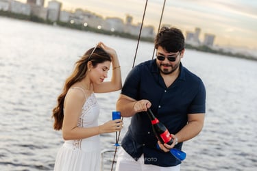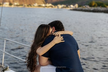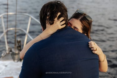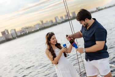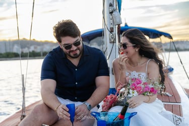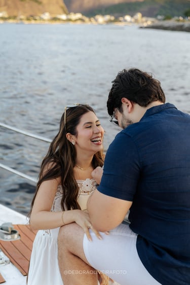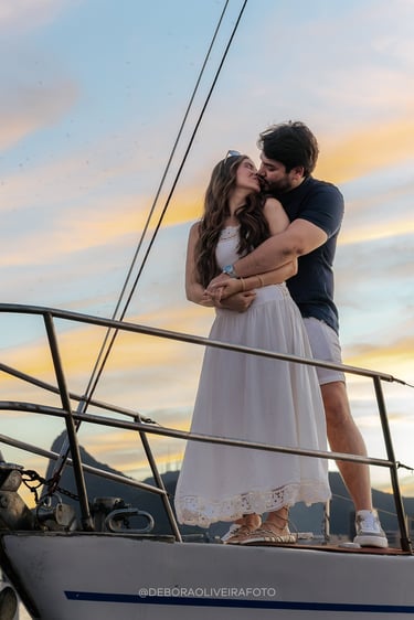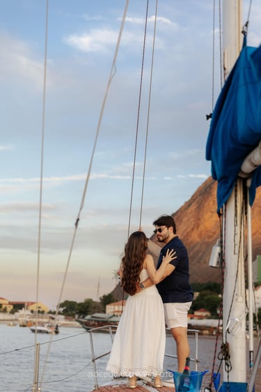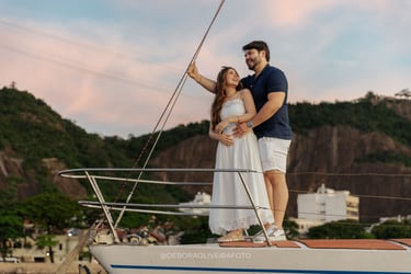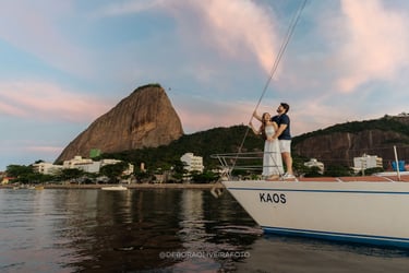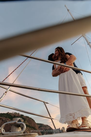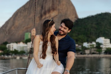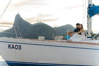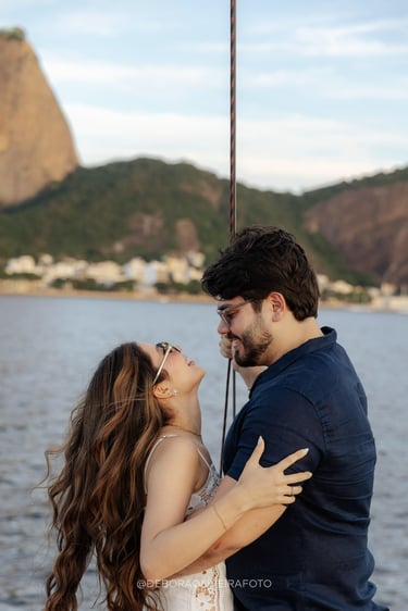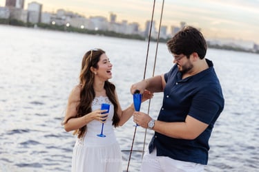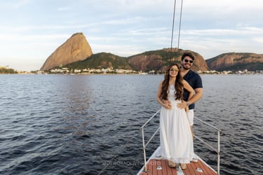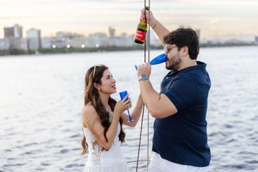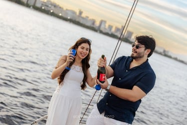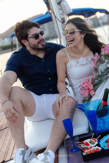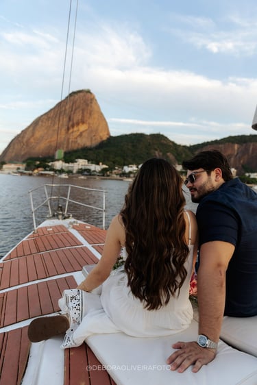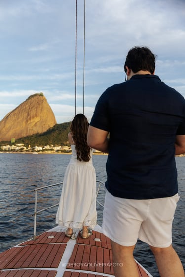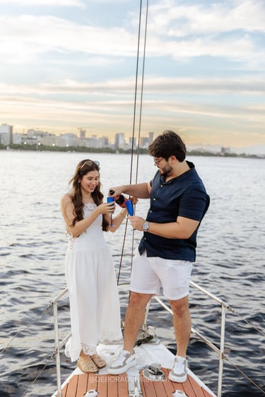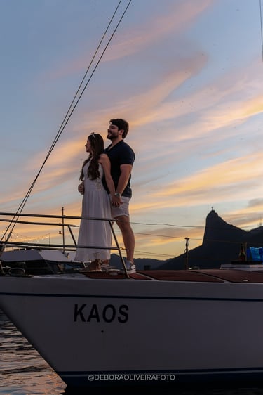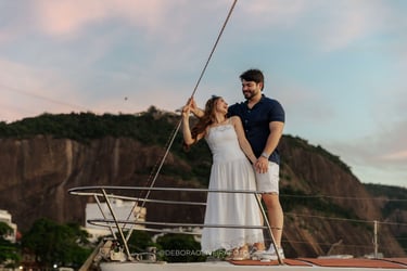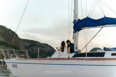 That’s when he found me. We talked, shared ideas, and he chose one of the experiences I offer for surprise proposals in Rio: a private sailboat at sunset. The idea? A romantic ride through the Guanabara Bay with the city’s iconic skyline all around — and the perfect setup for a “YES”.